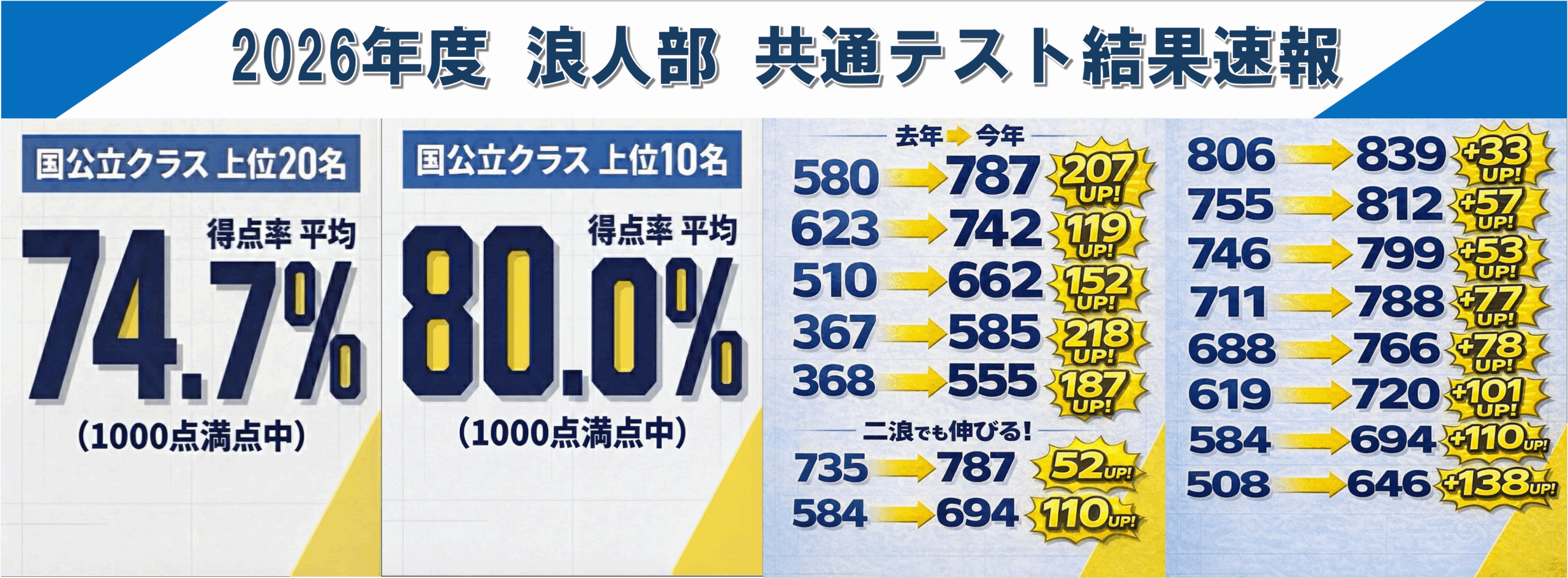 浪人しても成績はそこまで伸びないと世間では言われていますが、当塾では毎年本当に全ての生徒が凄く伸びて志望校に合格してくれています。